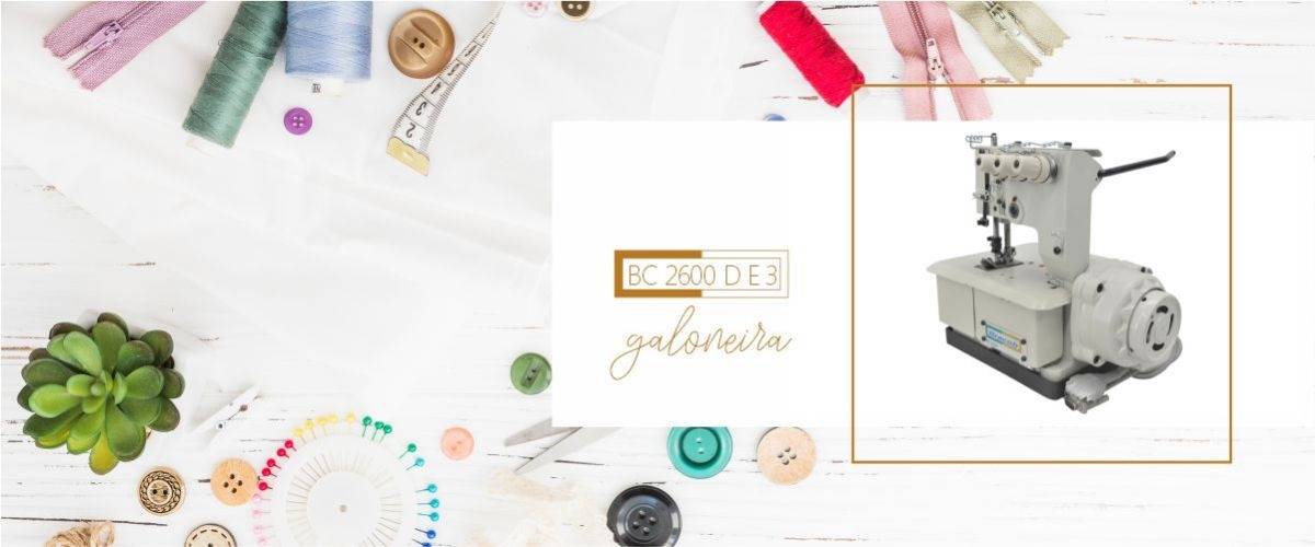 Máquina de costura galoneira 4 fios com mesa e motor direct drive Autovolt, que permite a ligação direta em tomadas 110V ou 220V. Utilizada para barras, bainhas, debrum (viés) e rebatimento de elástico em tecidos leves e médios. Produto nacional fabricado por uma empresa 100% brasileira.