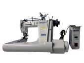 Fechadeira de Braço 3 agulhas, Ponto Corrente, com 2 catracas de Ferro, lubrificação automática e sistema de transporte rolamentado. Possui um conjunto de duas catracas de ferro para transportar materiais pesados. Ideal para costurar jeans e tecidos de grossa espessura.