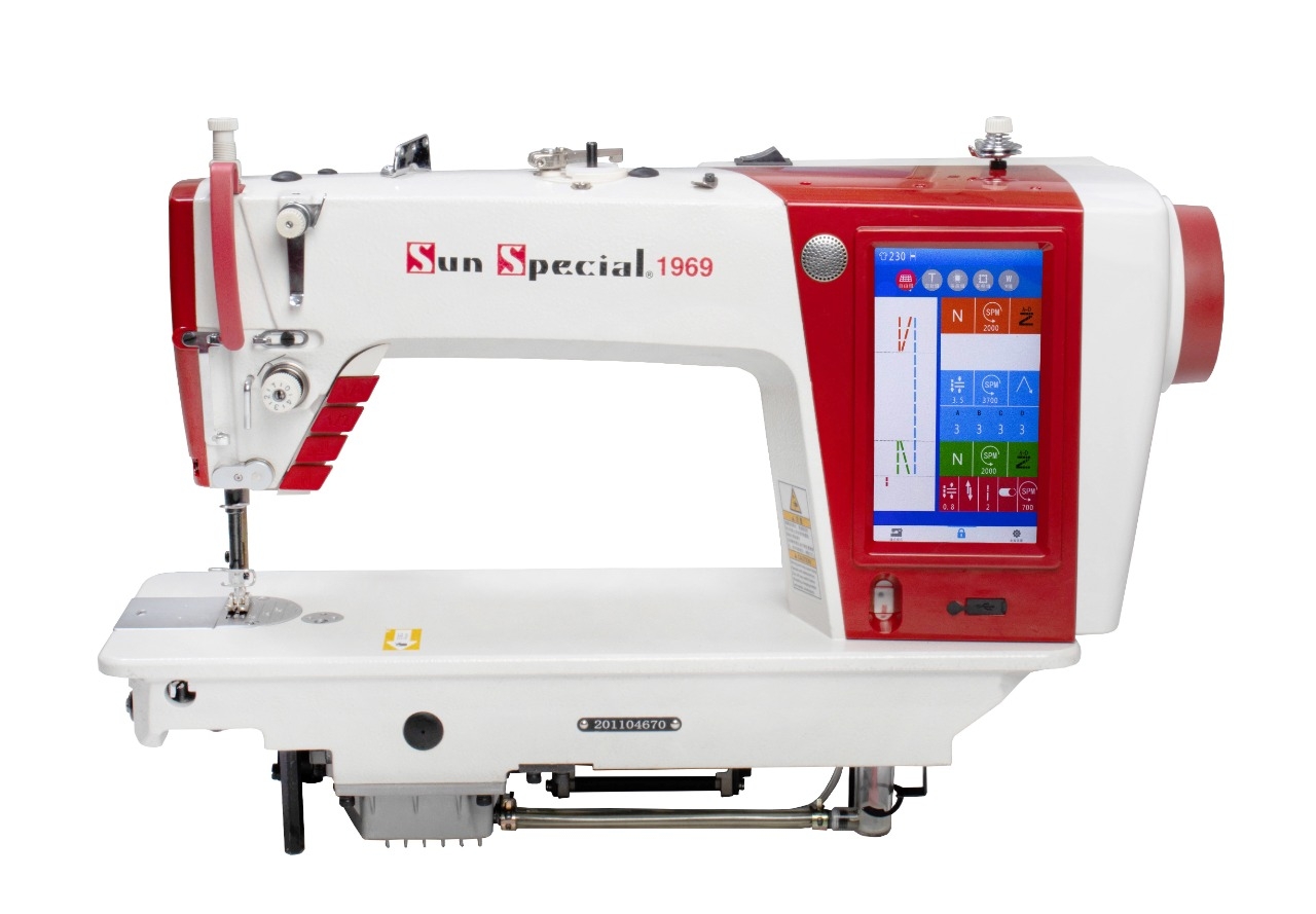 Led com ajuste de 3 intensidade, botão de meio ponto, com 8 pontos retos decorativos, tanque de óleo 200ml, painel touch screen 7', 5000ppm, com 3 motores = 1 motor servo direct acoplado, com 2 motor de passo para solenoide, levantar calcador e precisão nos pontos, tensor elétrico, joelheira eletrônica, com barra de agulha, barra do calcador e lancadeira teflonada, com USB pra carregar smartphones