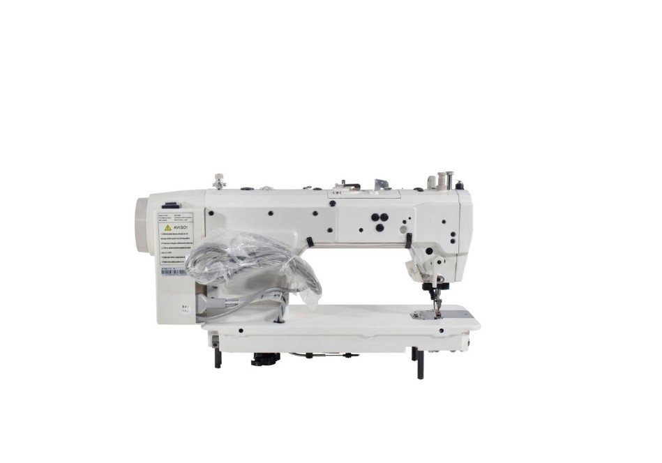 Reta, com refilador, eletrônica, 1 agulha, 2 fios, altura do calcador 10mm, ponto 5mm, bitola 3/16, lancadeira pequena, cpu acoplada ao cabeçote, com parada de agulha e controle de velocidade, direct drive, 550w, 220v,