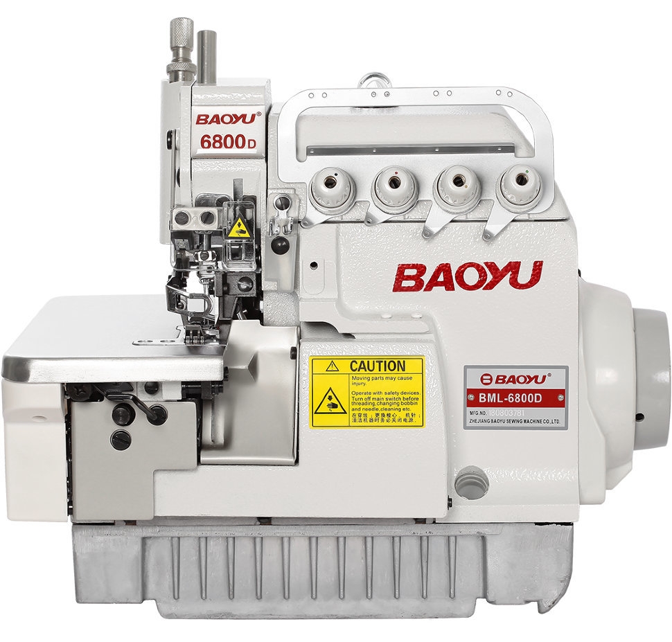 O Baoyu BML-6804D é um overlock industrial de duas agulhas e quatro fioscom uma plataforma de manga plana, projetado para costurar produtos têxteis a partir de tecidos de malha leves e médios. Ao trabalhar com duas agulhas, o overlock pode fazer uma costura elástica de sobre-costura-sobre-over-over ou pode ser usado como uma costura regular de agulha única apenas para overcasting Sistema de agulha - DCx27 SES. O comprimento máximo do ponto é 3,8 mm. A largura máxima do ponto é 6 mm. A distância entre agulhas é de 2 mm. A velocidade máxima de costura é de 6.000 st / min.