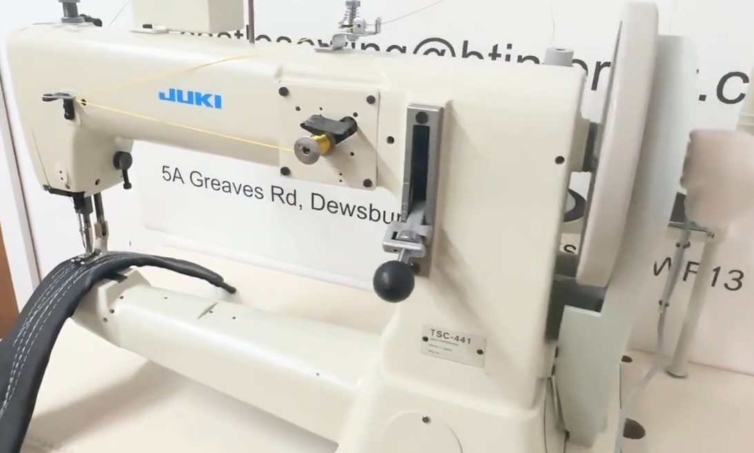 máquina de costura JUKI TSC-441 Japonesa, selaria de alta qualidade, máquina de costura - ombro, orla, barbante com gancho de cano. Triplo deslocamento. Imersão inferior, agulha superior e calcador Adequado para costurar materiais médios e grossos como couro, couro sintético e outros materiais técnicos