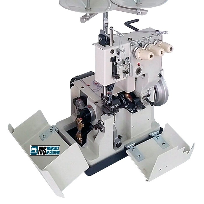 Máquinas de costura galoneira. Aplicação para bainha, debrum (colarete) e rebatimento de elástico.