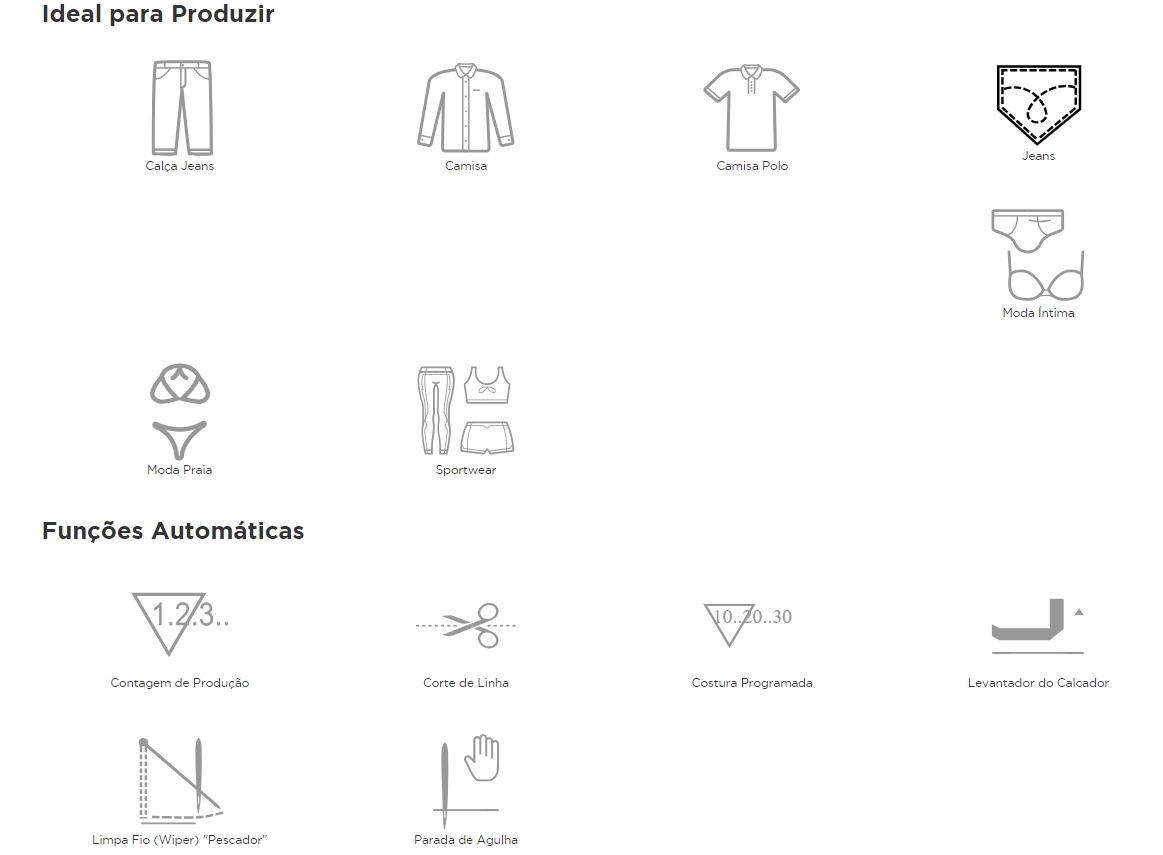 11 - Velocidade programável (a operadora ajusta a velocidade através de teclas no painel de comando) - as máquinas com motores convencionais são fabricadas para trabalhar na média de 5.000 RPM e para mudar a velocidade é necessária a troca da polia e reajuste da correia, o que demanda mais tempo.