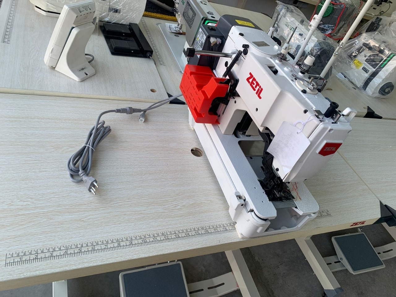 11 - Velocidade programável (a operadora ajusta a velocidade através de teclas no painel de comando) - as máquinas com motores convencionais são fabricadas para trabalhar na média de 5.000 RPM e para mudar a velocidade é necessária a troca da polia e reajuste da correia, o que demanda mais tempo.