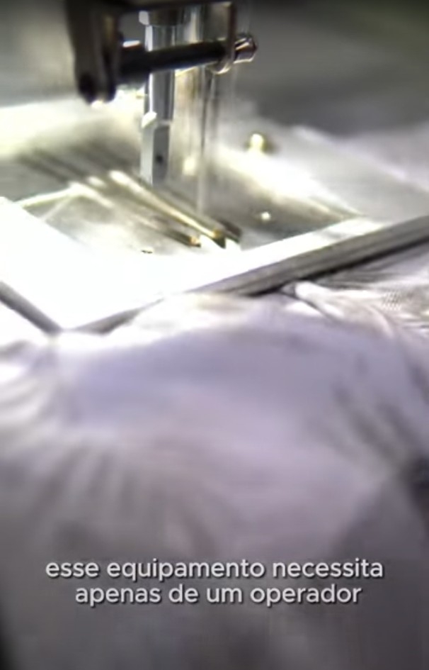 Máquina de Costura Programável com diversas automações, indicada para padronização das costuras, otimizando a qualidade do acabamento e aumentando a produtividade se comparado com o processo manual