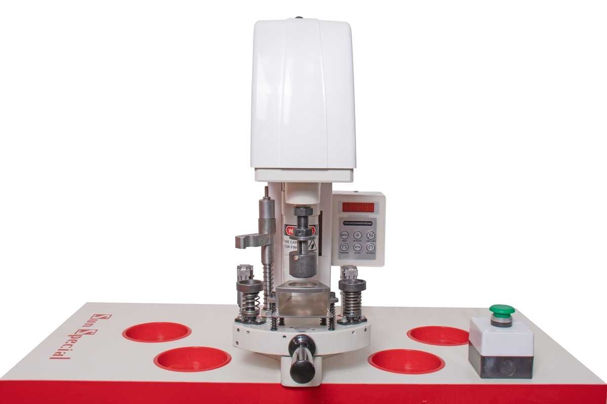 Indicada para forrar botões em diversos tamanhos, trocando somente as matrizes inferior e superior. Com alimentador triplo, motor servo eletrônico direct drive acoplado ao cabeçote, estrutura inovadora simples e painel de comando digital.