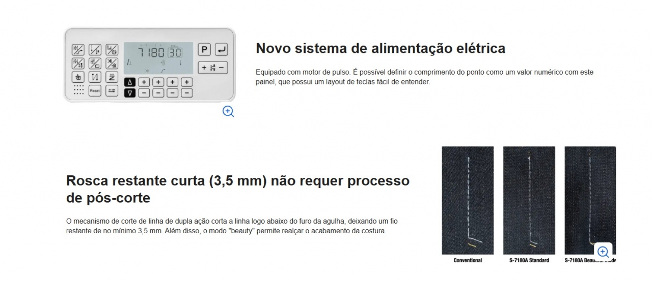 Parada de agulha e costuras programadas com tecla de atalho no painel