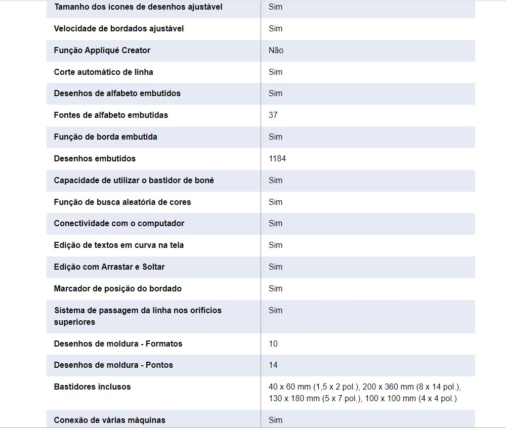 - Precisão e qualidade no bordado, com tecnologia japonesa;